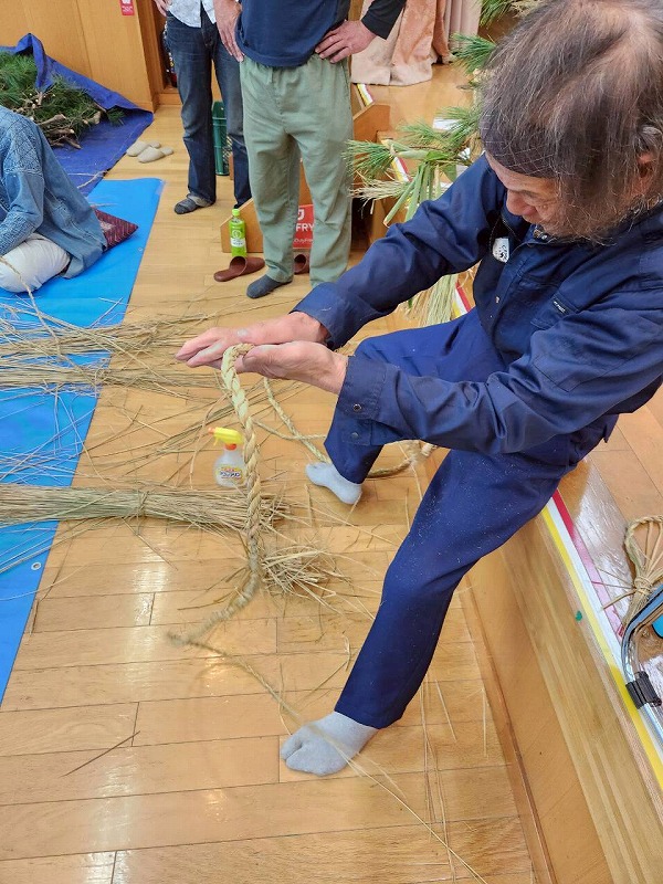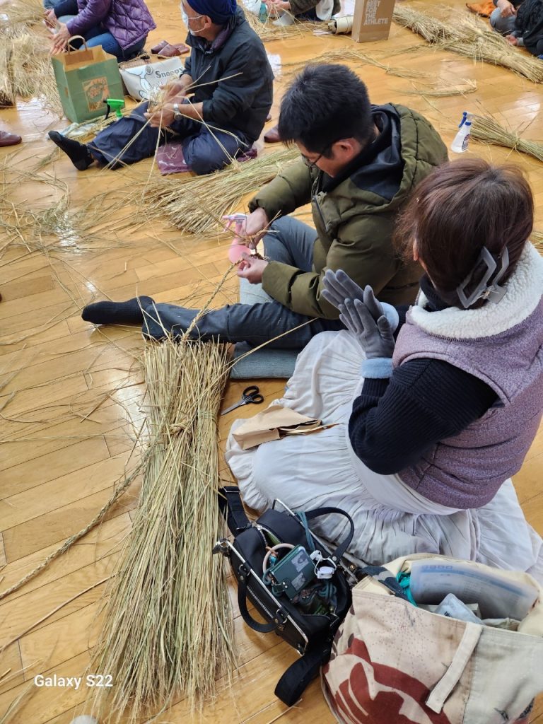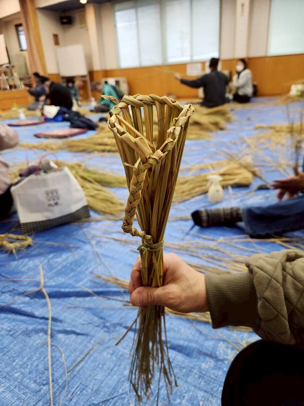 自分で作ったしめ縄で年神様を迎えることは、神聖な場所を示す結界となり、魔除けの意味があり、1年の幸せや豊穣への願いを込められる素晴らしいお正月準備です。今年は講師の方のご厚意で、松もいただけました。玄関に、神棚に、飾れますね。