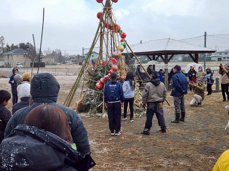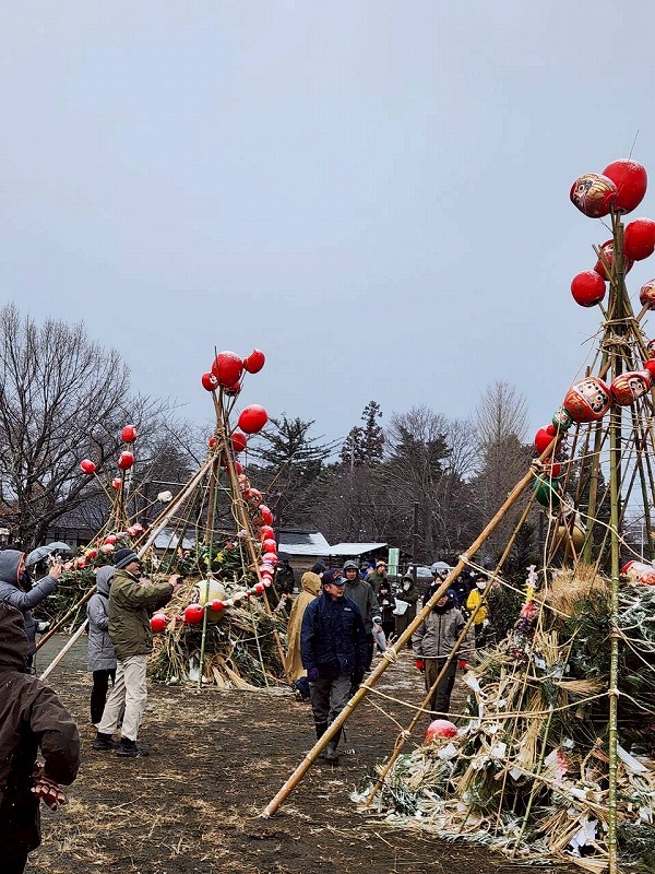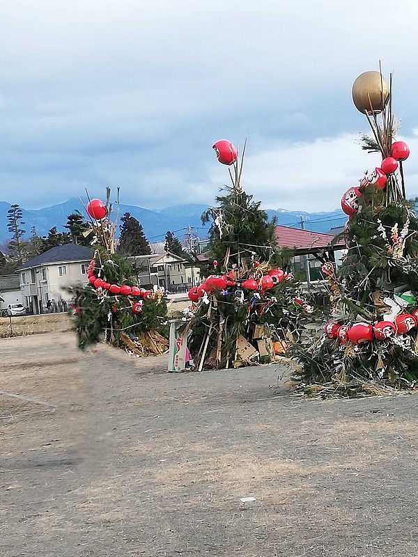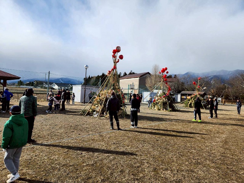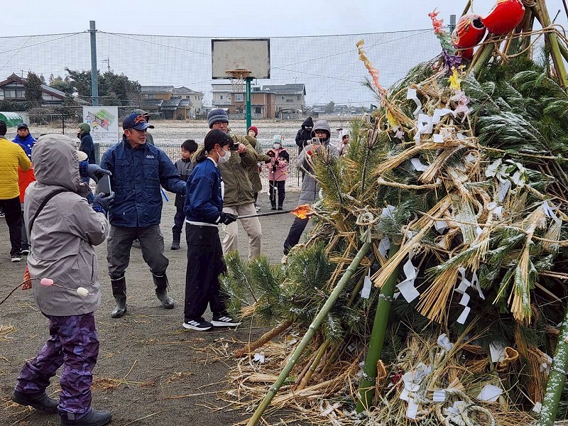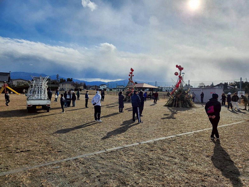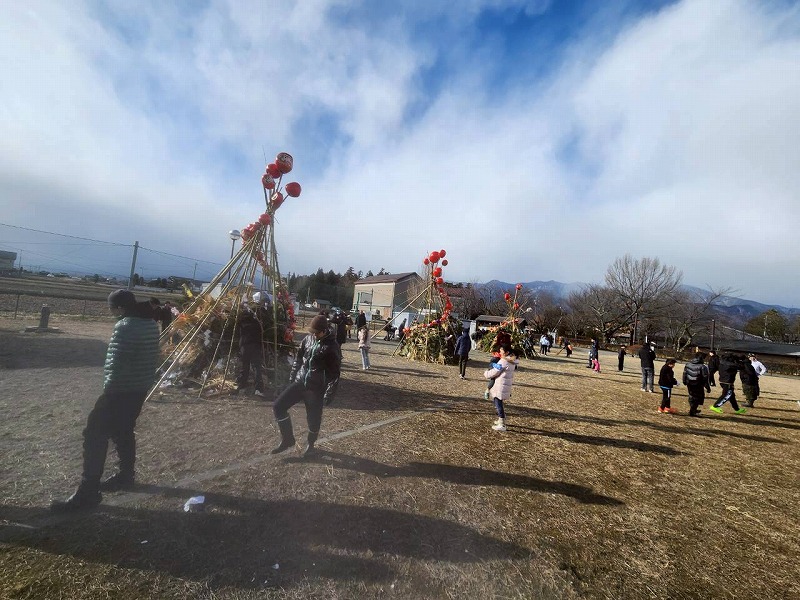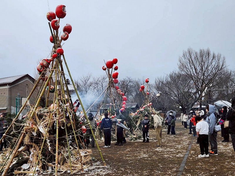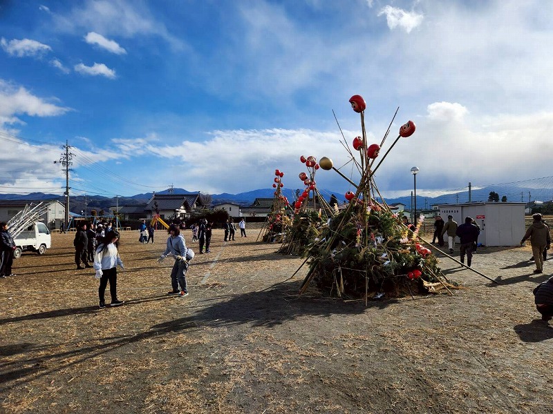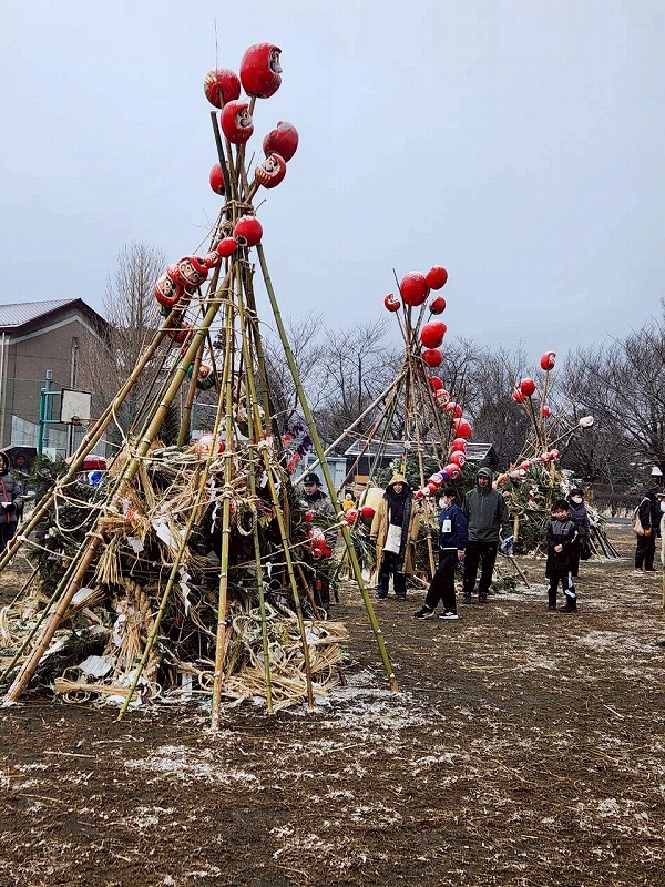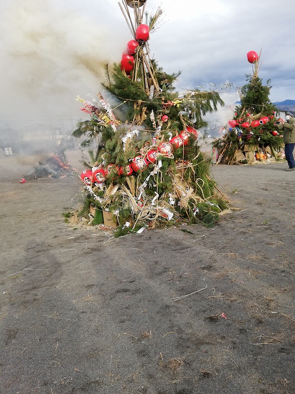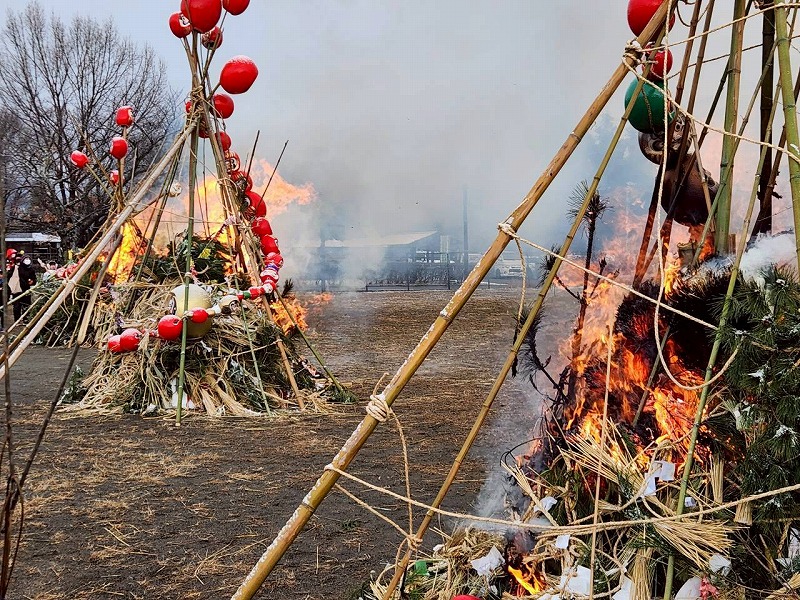 しめ縄や松飾、ダルマなどを燃やし、無病息災や豊作をねがいました。