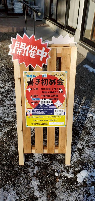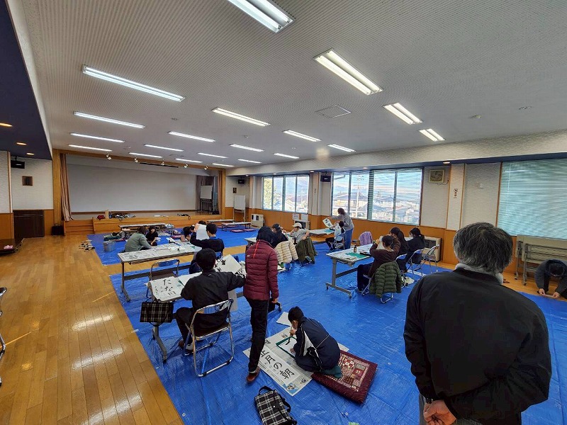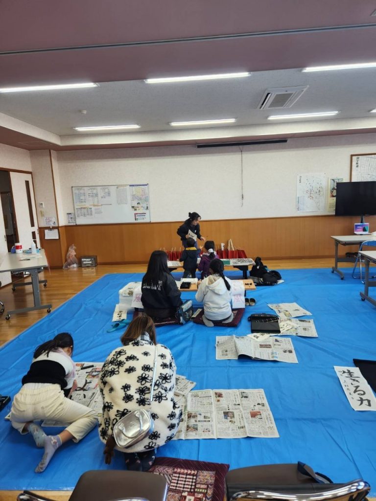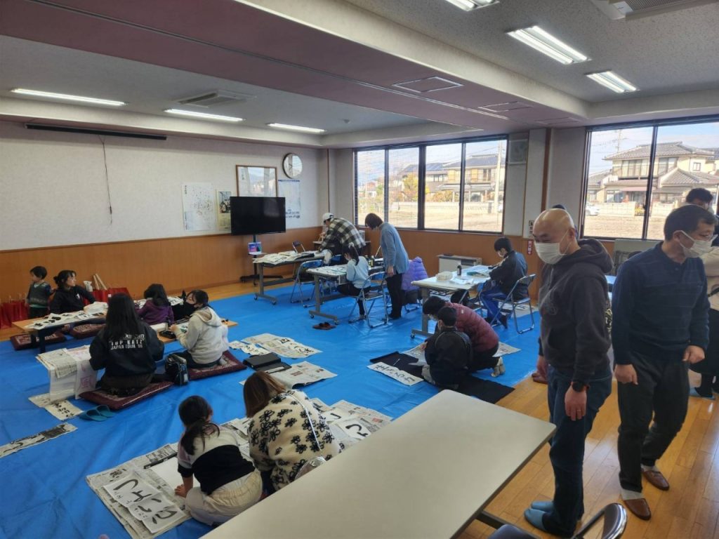 子供達は宿題の書初めをしたり、大人は今年の抱負を書いたり、写経をしたりしました。