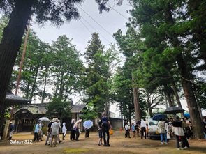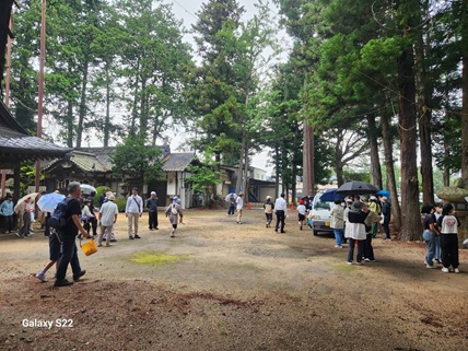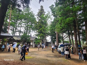 皆さん、熊野神社に集まりましたが、急遽、雨のため中止となりました。