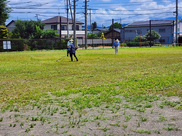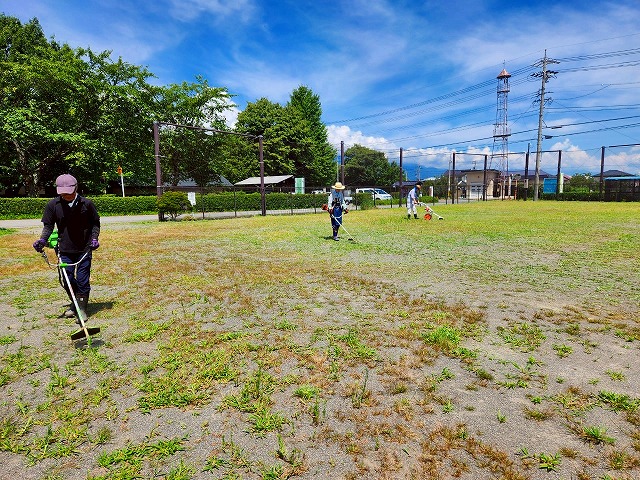 公園愛護会(区長,公民館の役員と有志で構成)は7月27日公園の草刈りを実施