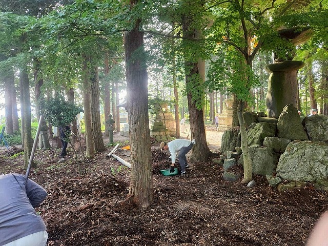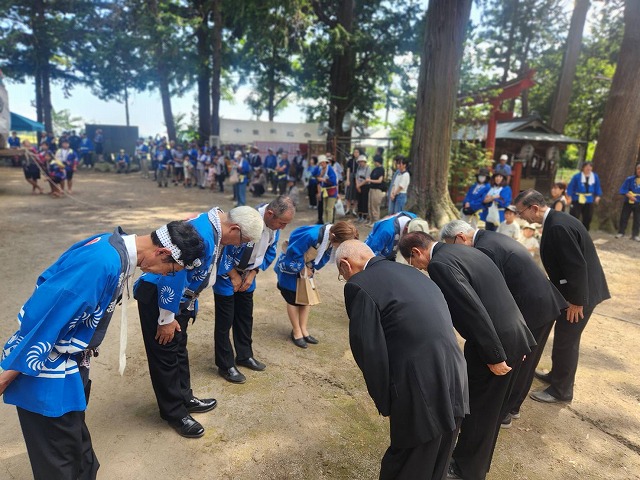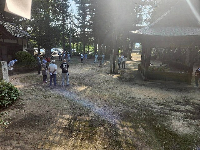 朝7時から、下東の区民の皆さんが、境内清掃、草刈り、拝殿の幕張、社殿、社務所、内外トイレの清掃等を行いました。