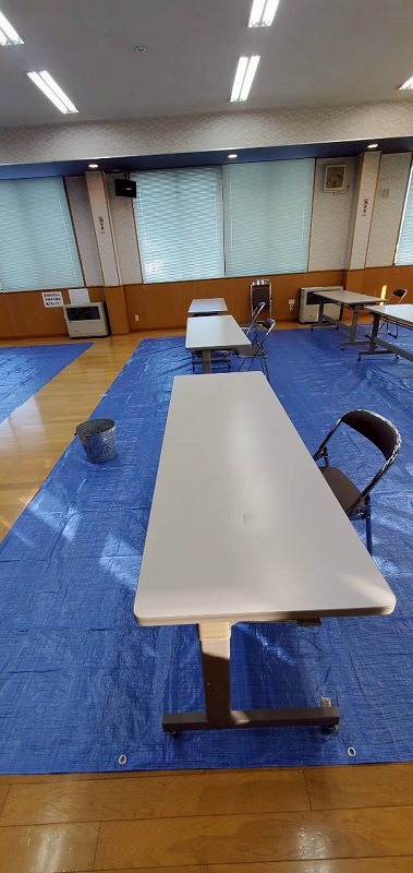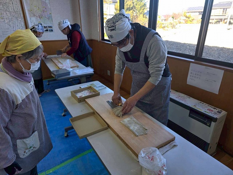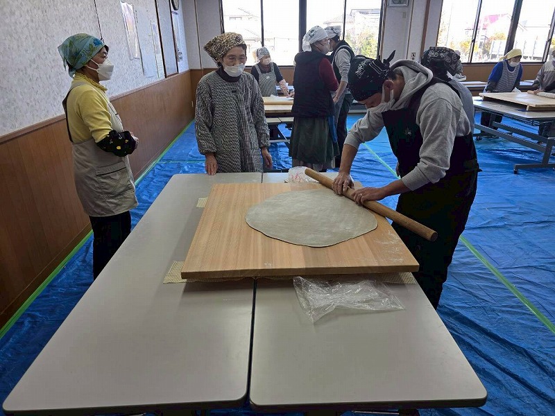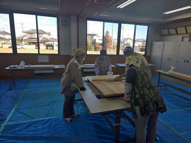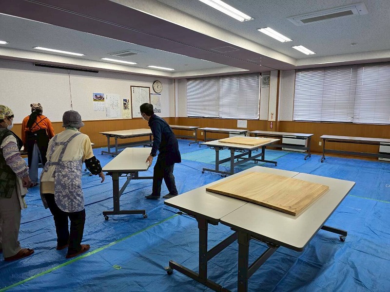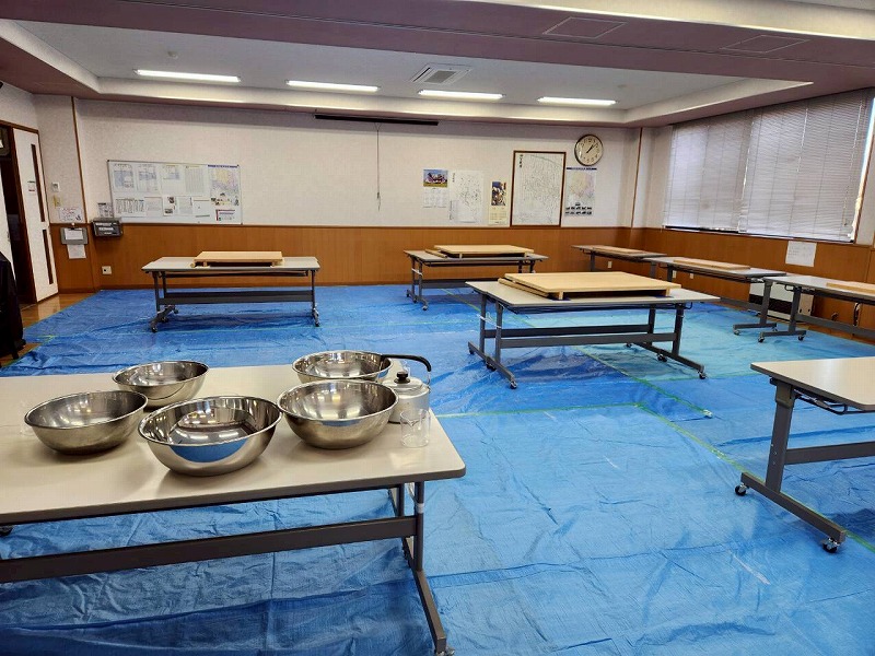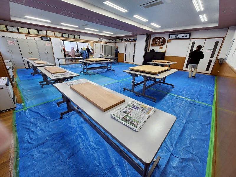 おもしろクラブの皆さんに教えてもらいながら、役員みんなでセッティングしました。明日はそば打ち講習会当日です。