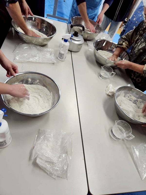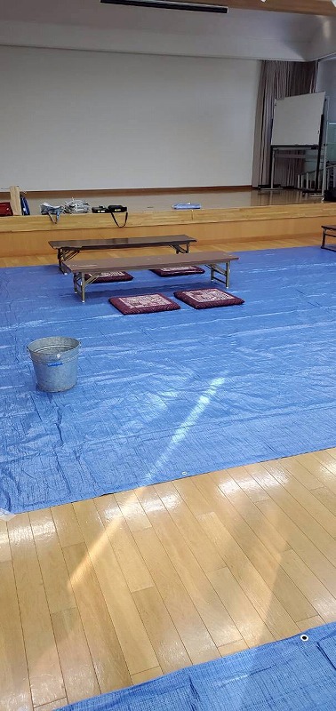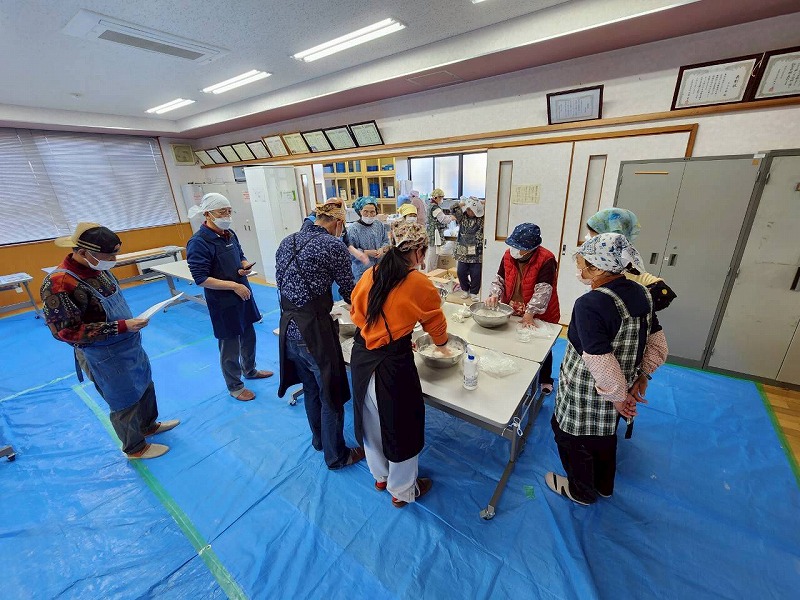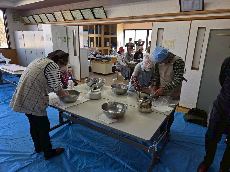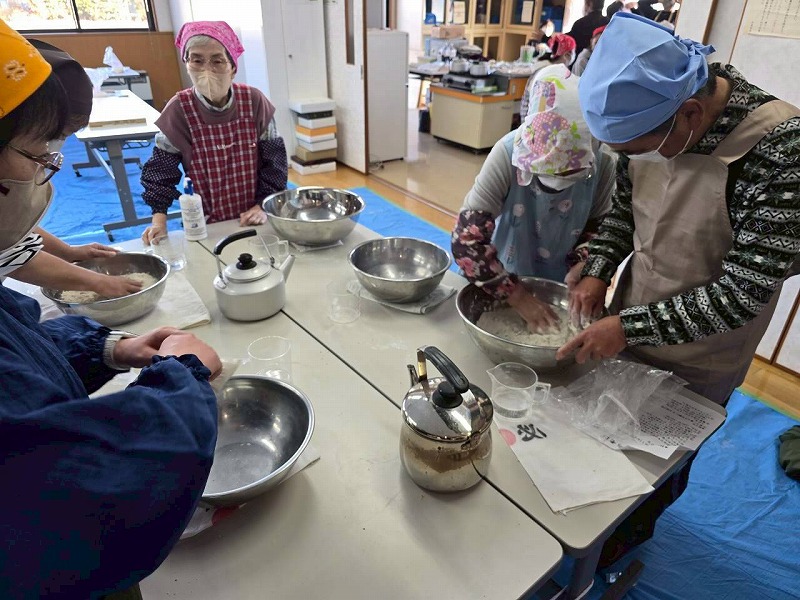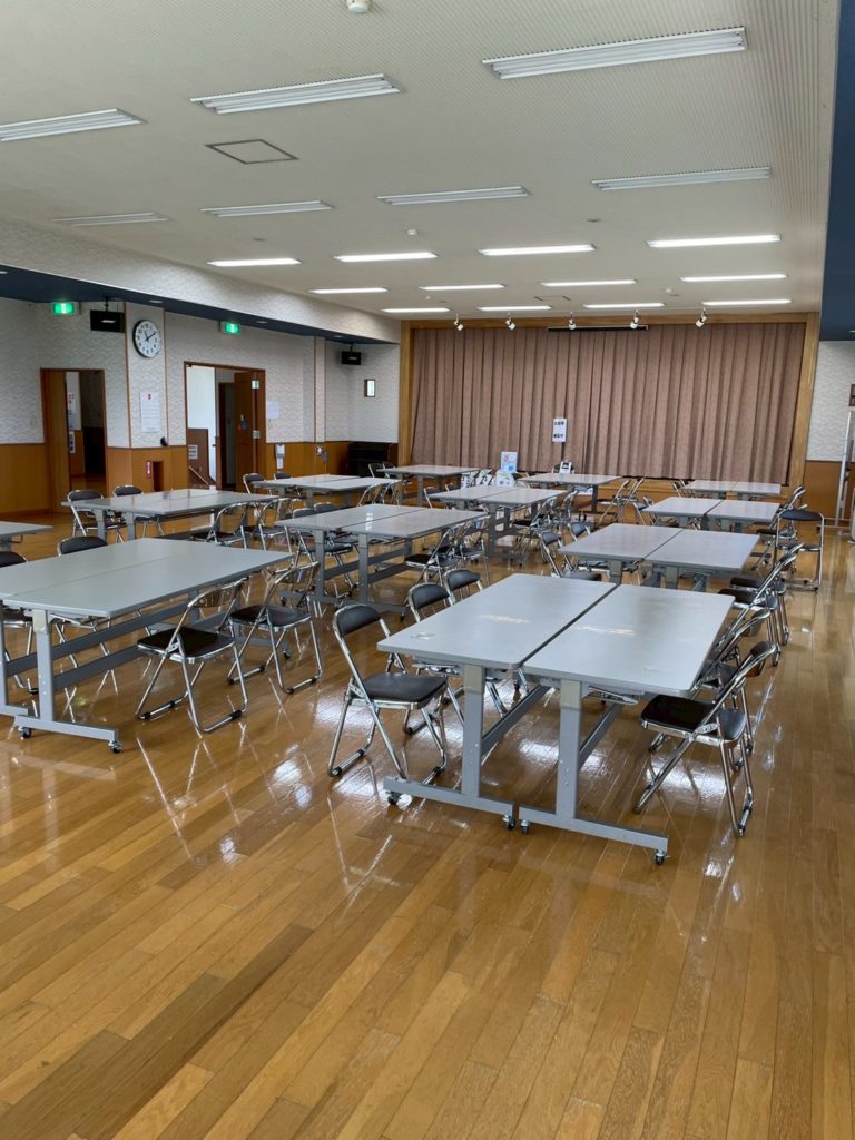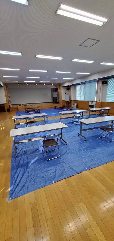 おもしろクラブの皆さんに教えてもらいながら、役員みんなでセッティングしました。明日はそば打ち講習会当日です。