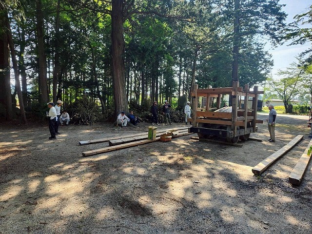 区長、自治会長で五つ灯篭の木枠設置等が行われました。