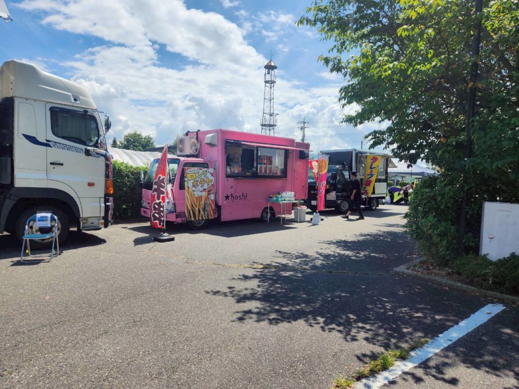 昨日用意したテントを飾りつけ、ジュースを冷やしたり、飲食スペースやトラックの飾りつけ、看板やお花飾りなど、最後の最後まで不安と期待にワクワクドキドキです!