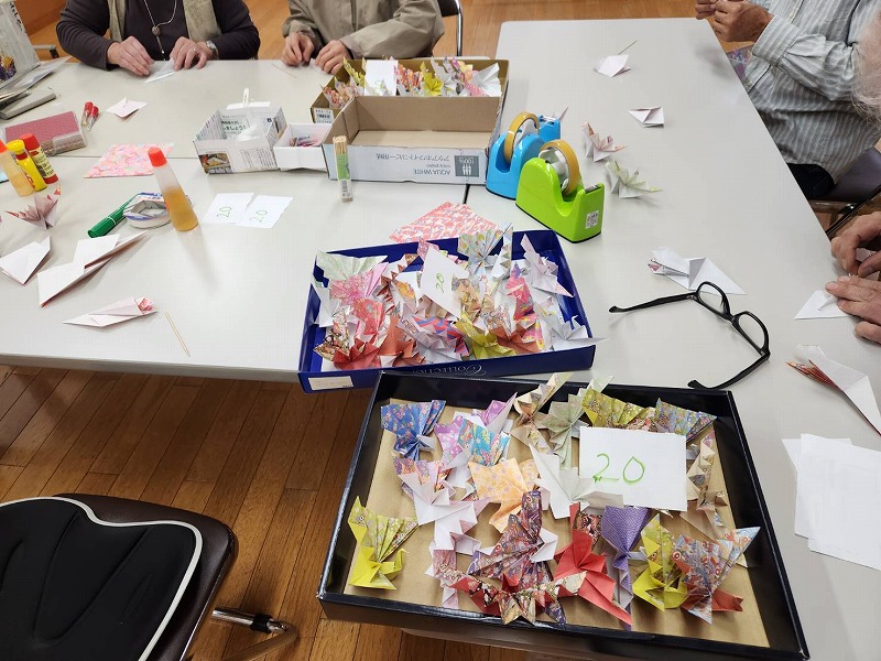 ボランティア募集のチラシにたくさんのお手伝いに集まってくれて本当にありがとうございました。小学生の女の子たちは、折り紙やお花作り、星の飾りなど、公民館を飾り付けてくれました!