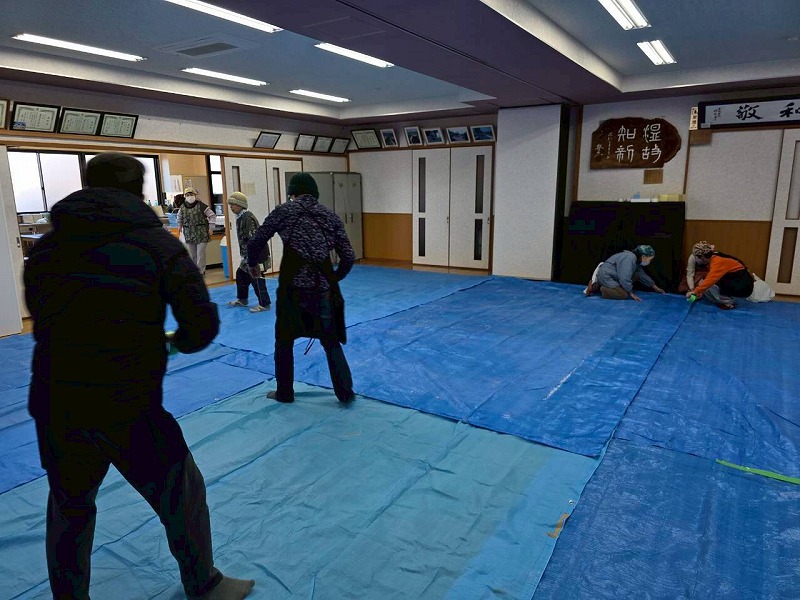 8時からは、全地区の男性陣の隣組組長、公民館4役、紫石会で船張り