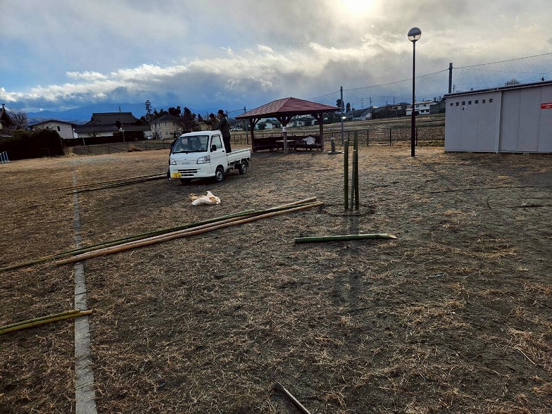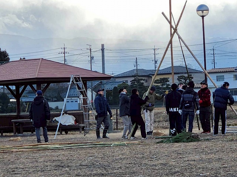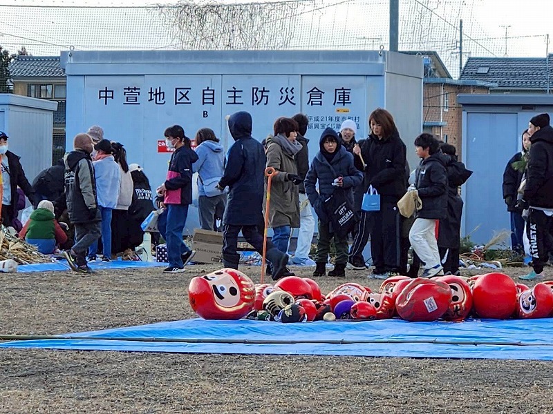 (設営中もやぐらが倒れ、ダルマが吹っ飛ぶハプニングもありました)